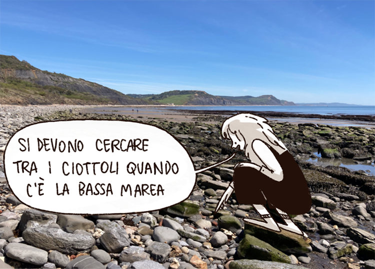 Non è una cosa che intacca troppo l’ecologia del luogo: sono ammoniti che vengono alla luce scavate dalle acque dell’alta marea e che verrebbero poi trascinate negli abissi al ciclo successivo.
