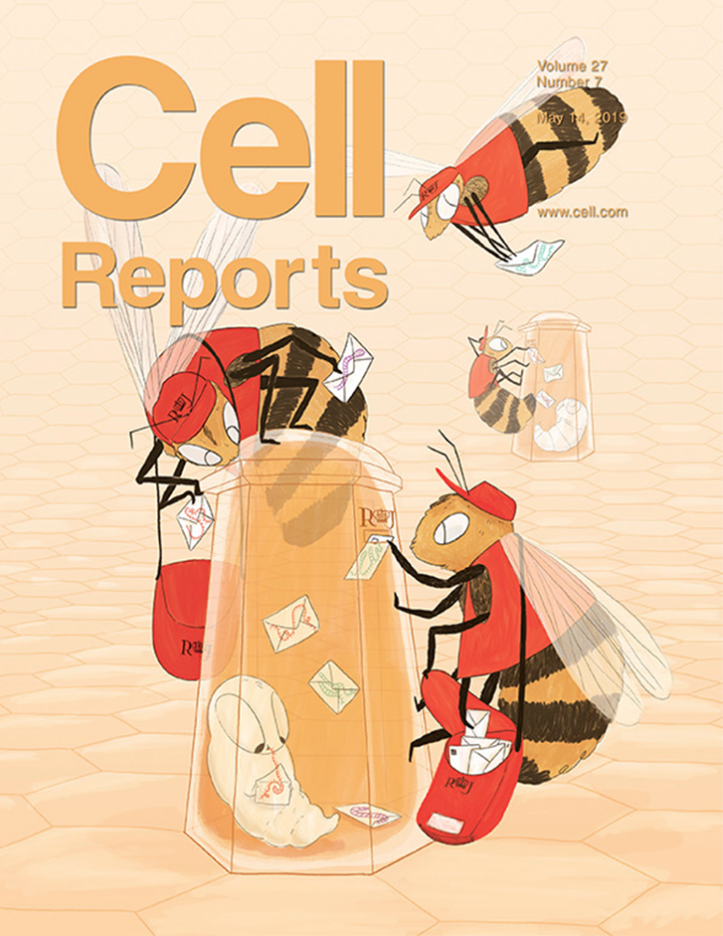 Passando ai disegni (INSOMMA A ME) invece c’è un’altra bella notizia riguardante questo paper. Talvolta le riviste a cui proponi il tuo articolo ti dicono che sei un papabile concorrente per andare in copertina, e che se vuoi puoi mandar loro un’immagine. Tu lo fai e poi loro fanno una selezione interna fra le varie proposte arrivate e decidono quale usare. E indovinate un po’ chi è sulla cover di Cell Reports di questa settimana???