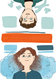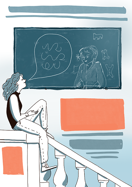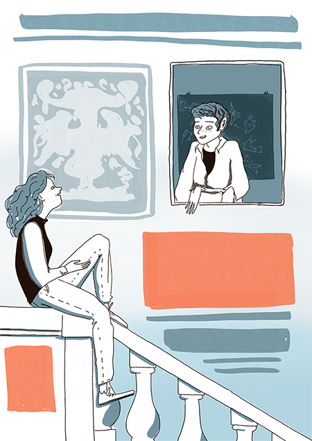 Ma la Scuola Normale dov’è? In un’altra bozza ho provato a inserirla, facendo sedere Colombo sulla scalinata principale in una conversazione con Mirzakhani alla finestra.Di questa mi piaceva la composizione, ma ero un po’ dubbiosa: Mirzakhani che io sappia in Normale non ci è mai venuta, e comunque questa conferenza non è legata direttamente alla Scuola, mentre qui è un po’ troppo protagonista.