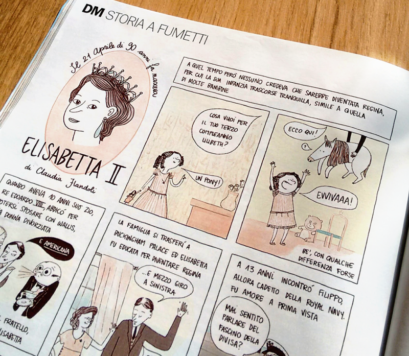 Oggi Elisabetta II compie 90 anni: mille torce in tutta l’Inghilterra, grandi feste e brindisi ogni dove, ma soprattutto il mio fumetto di due pagine su Donna Moderna!