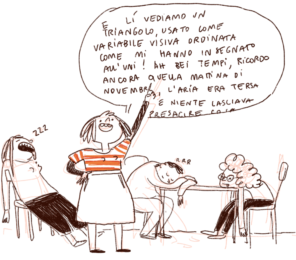 Va’ che posa plastica. Mi ero preparata una bella presentazione secchiona che ho esposto in lungo e in largo, analizzando ogni passaggio del mio lavoro. Fra il pubblico regnava un silenzio tombale.
