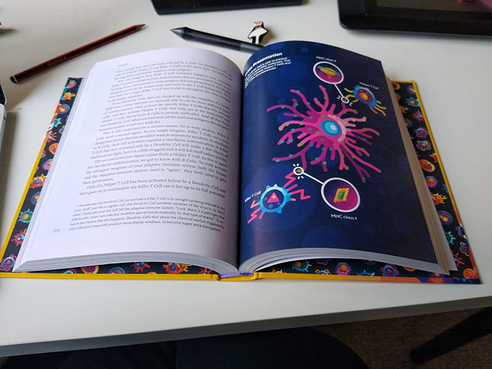 Mi è appena arrivato il libro Immune, un libro sull’Immunologia scritto da Philip Dettmer, creatore dello studio Kurzgesagt – uno degli studi di comunicazione scientifica più incredibili in circolazione.Per ora son solo riuscita a sfogliarlo, ma sembra fatto benissimo: le illustrazioni sono come al loro solito stupende e, a giudicare dalla mole del libro, va parecchio nel dettaglio.