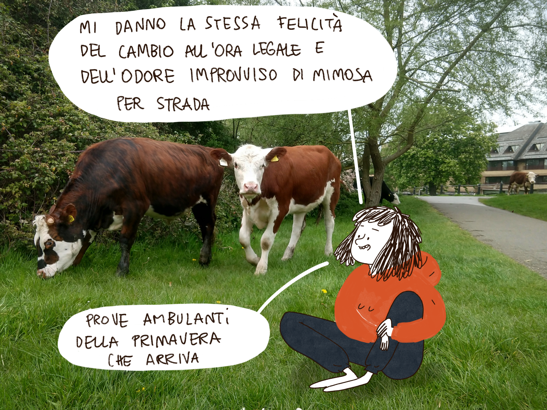 quasi mi ero persa che stavamo arrivando alla fine del mese e che dovevo scrivere questa newsletter. Per fortuna poi è stato il 25 aprile (ehi auguri!) e sono andata a festeggiare con una passeggiata nei parchi cittadini, ho incontrato le mucche e ho pensato che ve le avrei raccontate in questa mail. Ah che bello, una frase in cui non sembro pazza per niente. Ma ora vi spiego.