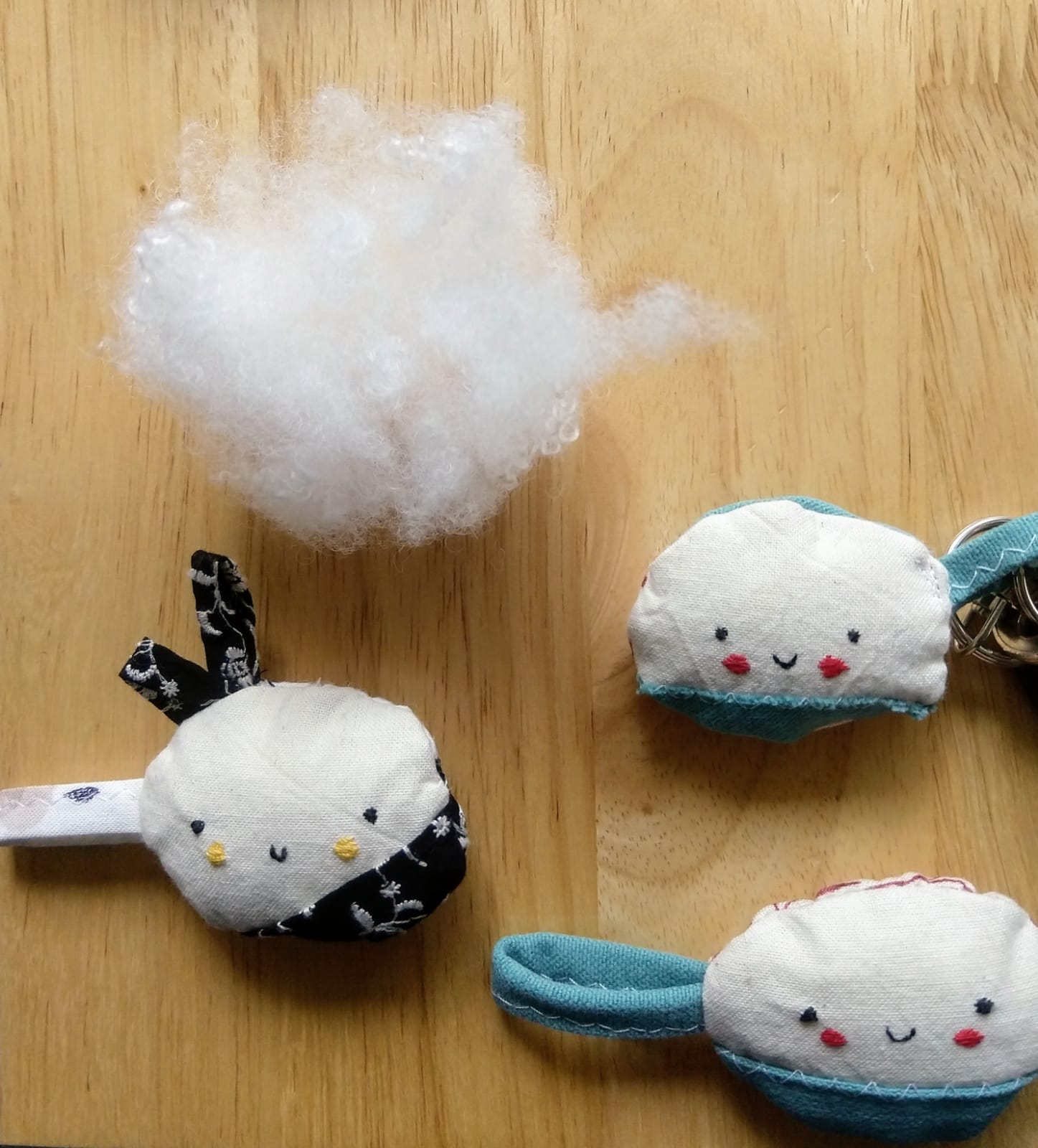 E infine qualche specifica tecnica. Ogni Nuvolino misura approssimativamente 5,5×4,5cm e il cordino è 4cm. Insomma sono piccolini. Se no non si chiamavano Nuvolini. Il ripieno è quello per i cuscini e i giochi. Non datelo in pasto al vostro cane, lui magari sopravvive, il mio cuore no.