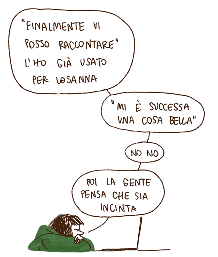 “la gente” sarebbe mio papà e non me la sento di spezzargli il cuore dicendo che no, non sono incinta, e che invece