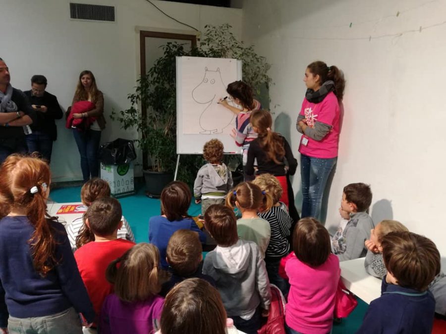 3. Fare un micro-incontro con dei bambini in cui abbiamo disegnato i Mumin tutti insieme.