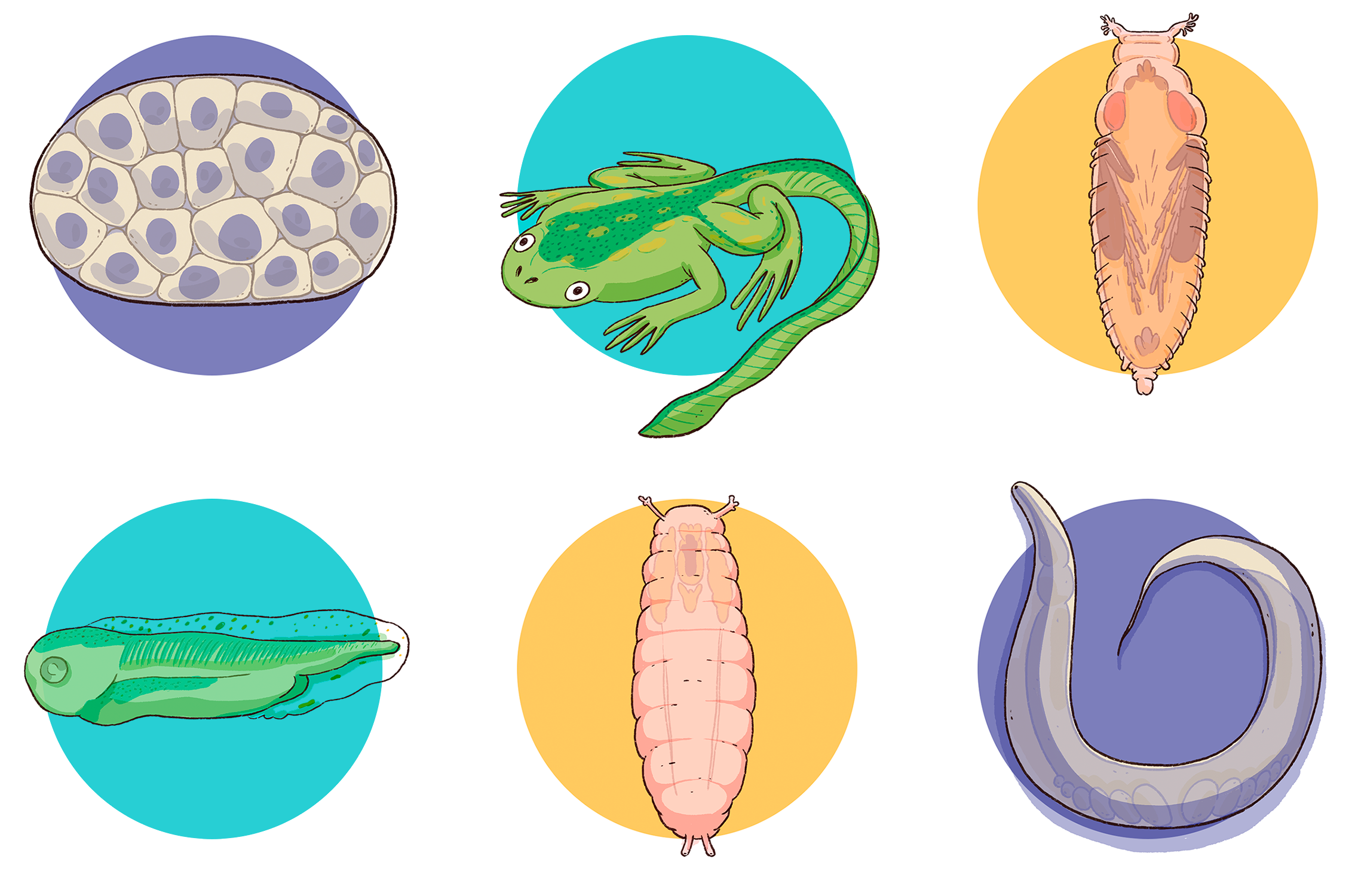 The drawings were used both in print and on a web app where you could play the quest, learn about the history of science around Cambridge and ultimately learn how these animals can give scientists clues about human development.